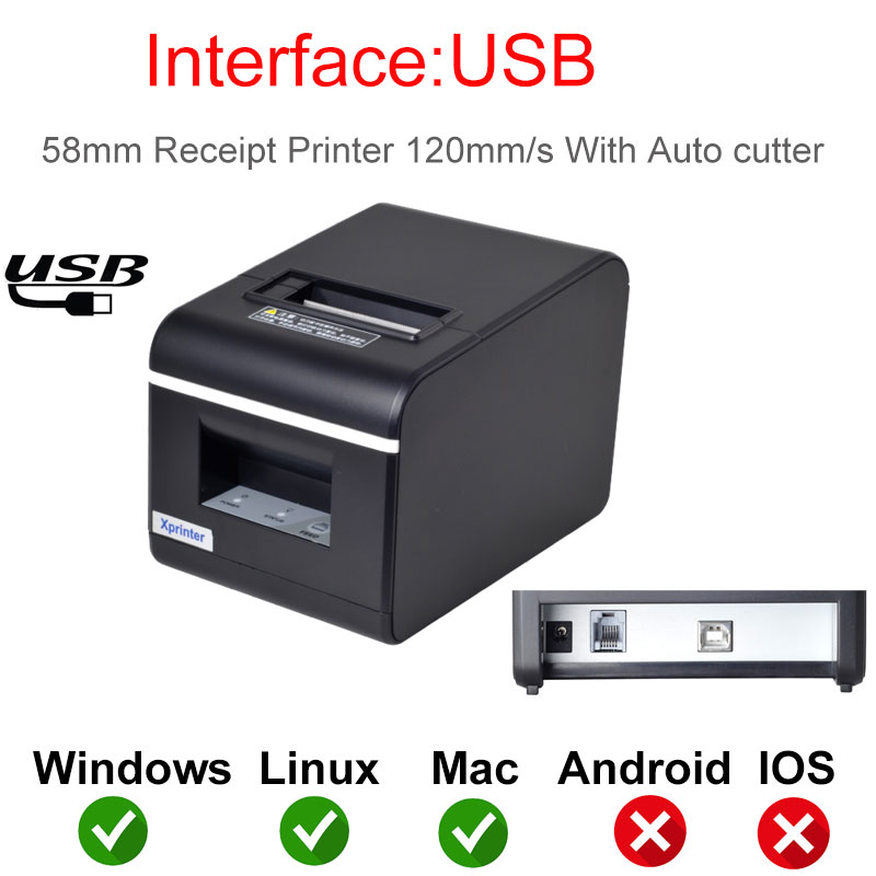 Xprinter 58MM Auto-cutter Thermal Receipt/Bill Printer 120MM/S With Ethernet /USB /Bluetooth + 1 Roll Paper